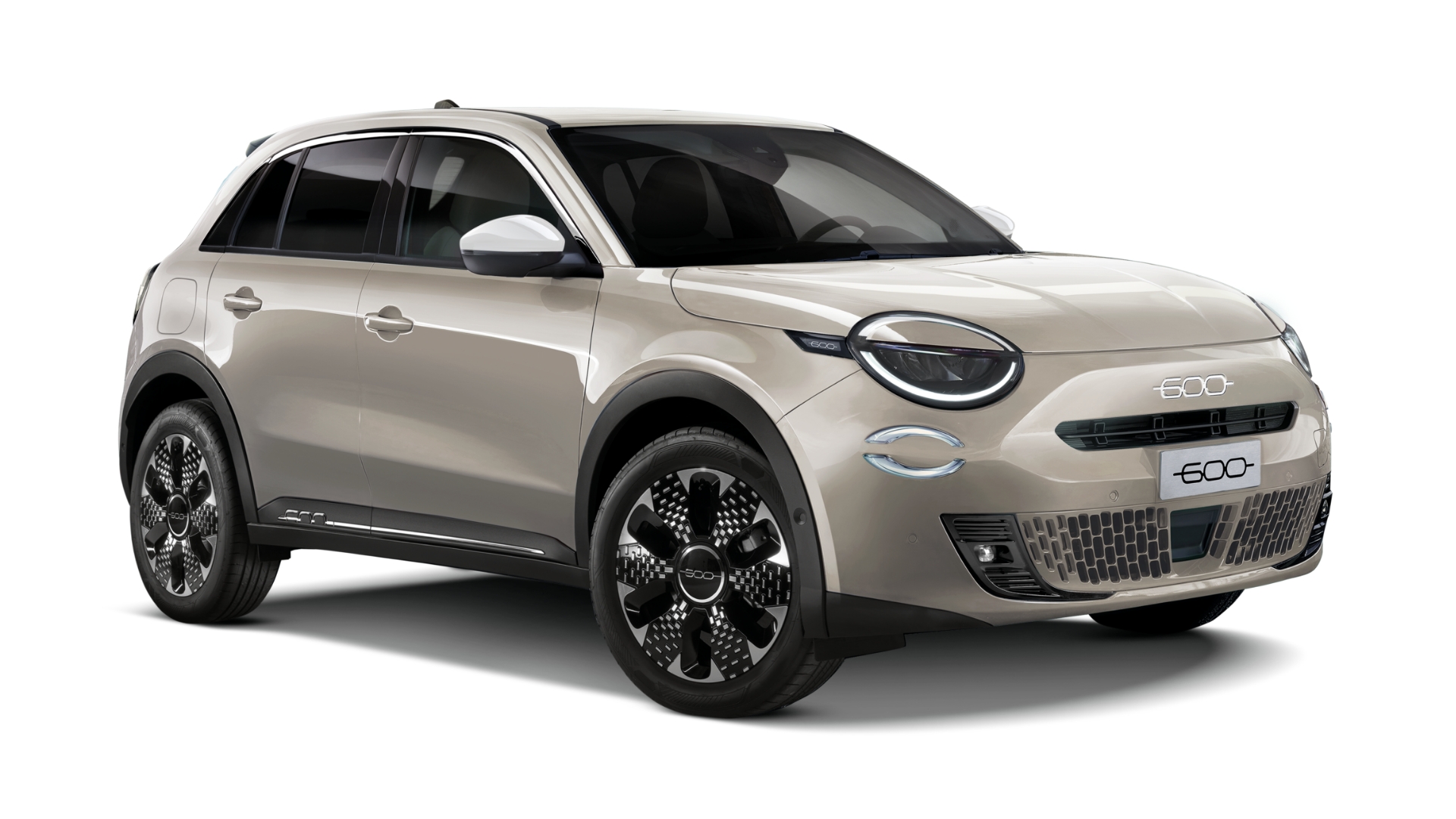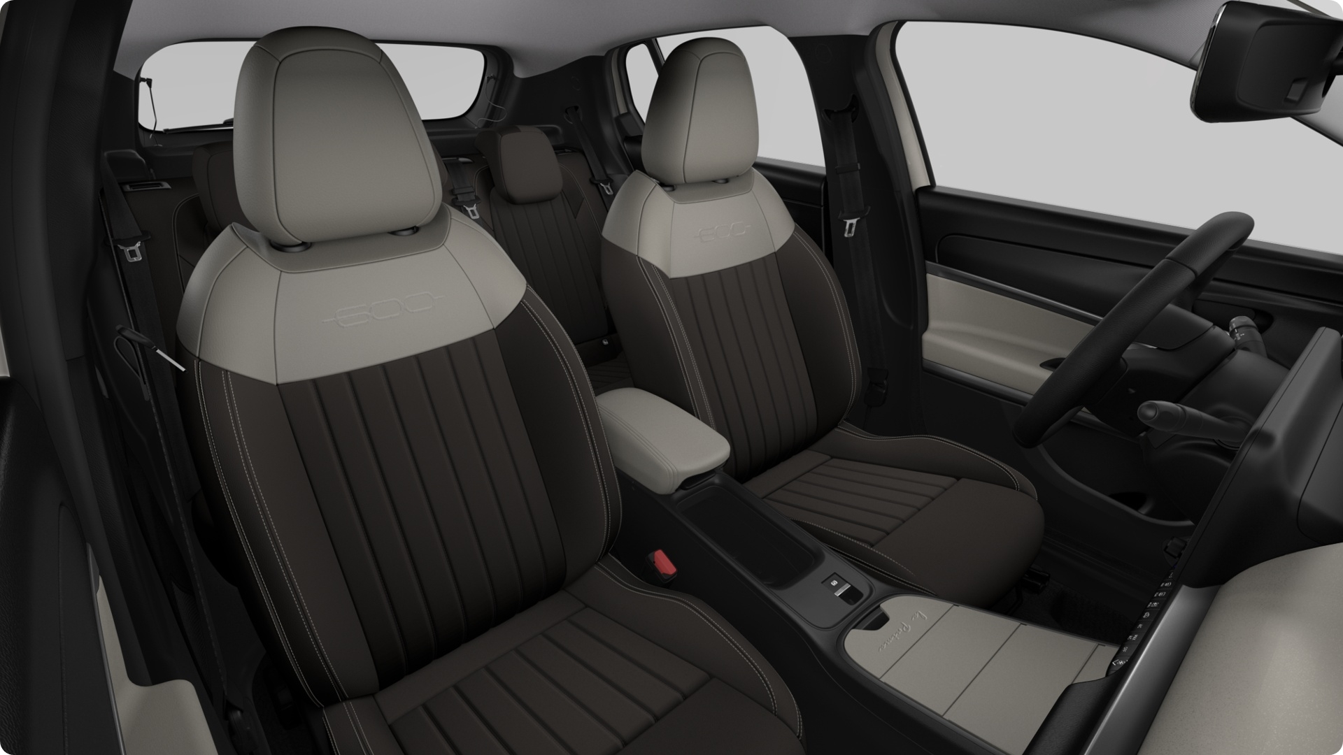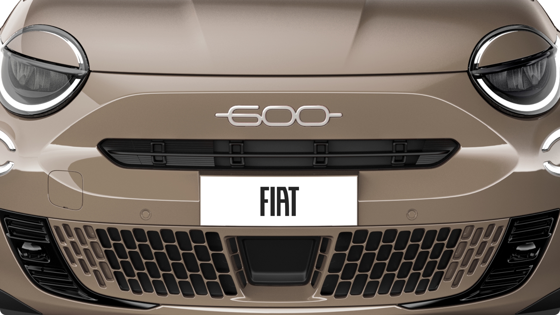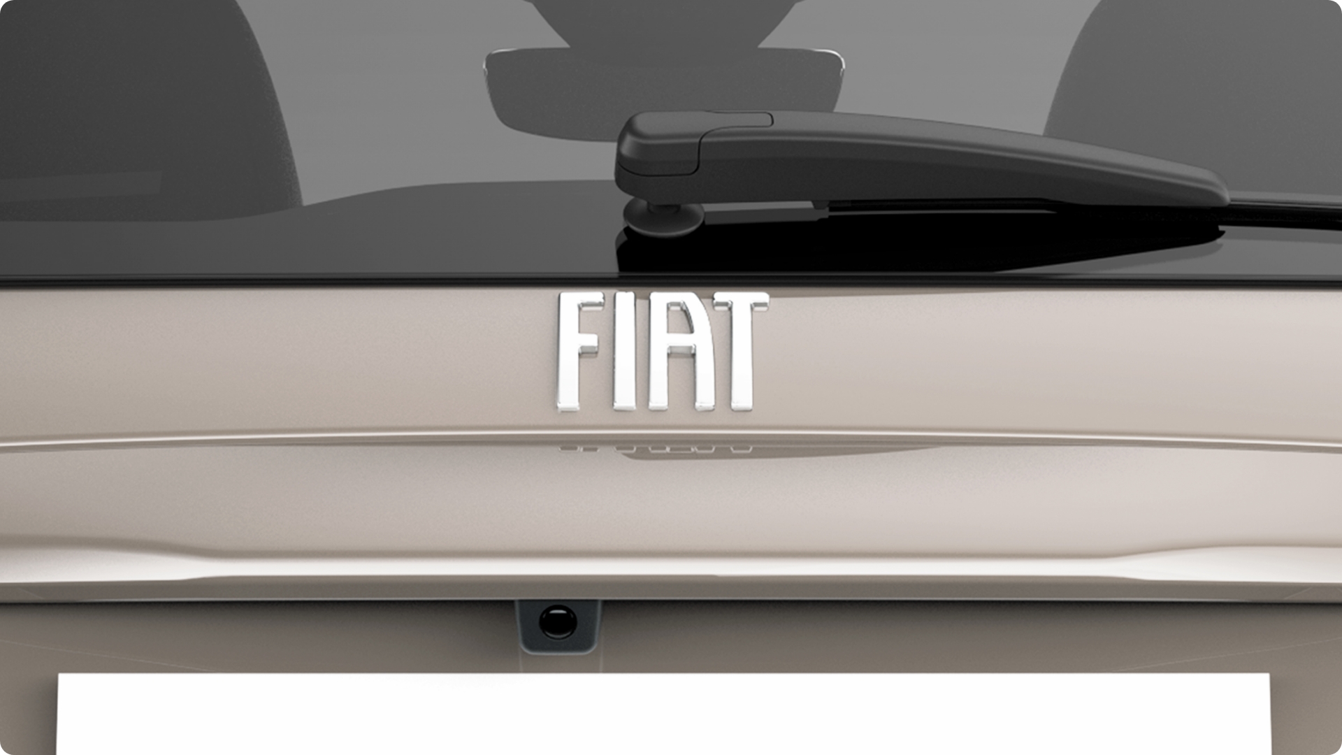 ホワイトカラーに彩られたリアを飾るFIATエンブレム。『600 Hybrid Caffelate』の個性を印象的に飾ります。