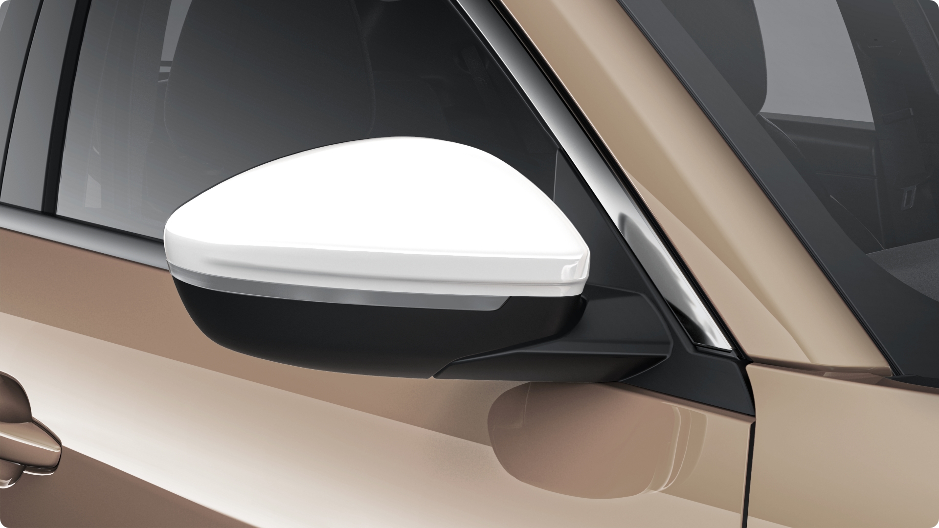 サイドビューにさりげないアクセントを感じるホワイトカラーのミラーカバー。『600 Hybrid Caffelate』のスタイリッシュなデザインをより華やかに彩ります。