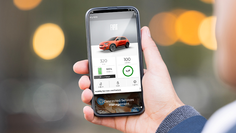 My Uconnect FIATアプリを使用すれば、いつでもどこでも『600』を管理することが可能。 ※装備車に限ります。