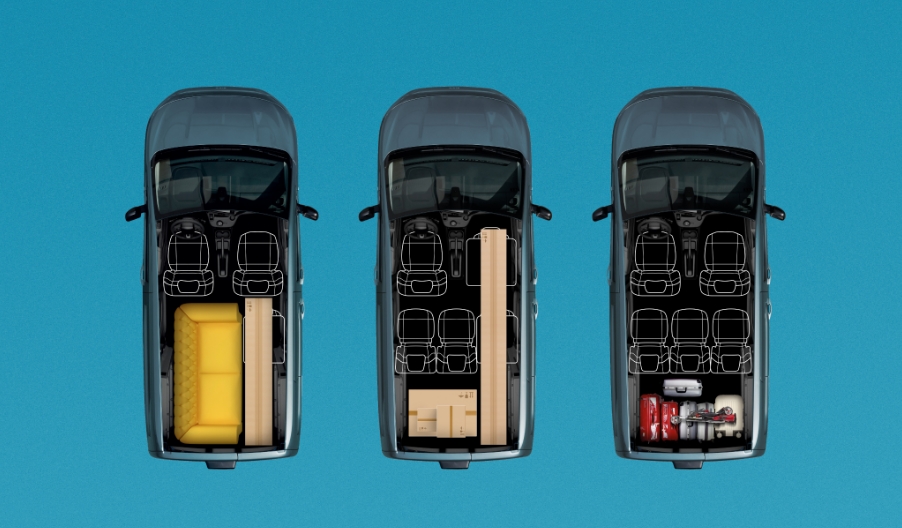 多彩なシートアレンジにより、5人乗りの『Doblò』は最大2,126リットル、7人乗りの『Doblò Maxi』は最大2,693リットルのラゲッジスペースを実現。