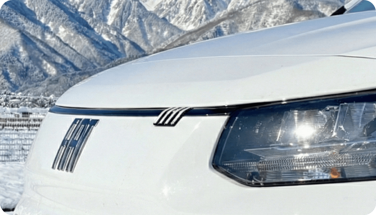 LEDヘッドライトを採用したヘッドライトやスキッドプレートが、フロントデザインを精悍な雰囲気に演出。さらに、足元をシックに飾るブラックのアルミホイールが、よりスタイリッシュな印象を与えます。