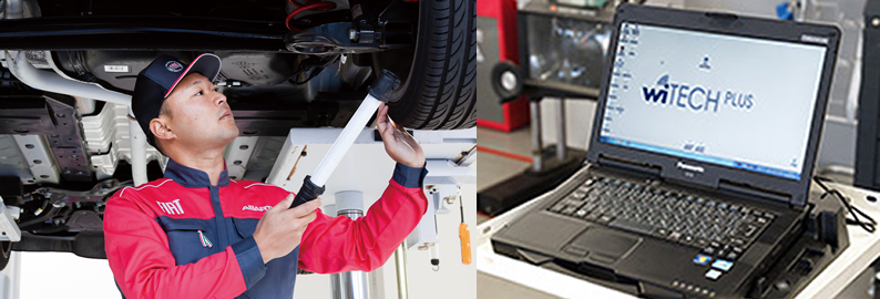 クルマ本来の魅力を余すところなく味わっていただくために、サービスエキスパートが精密な点検作業を行なっています。